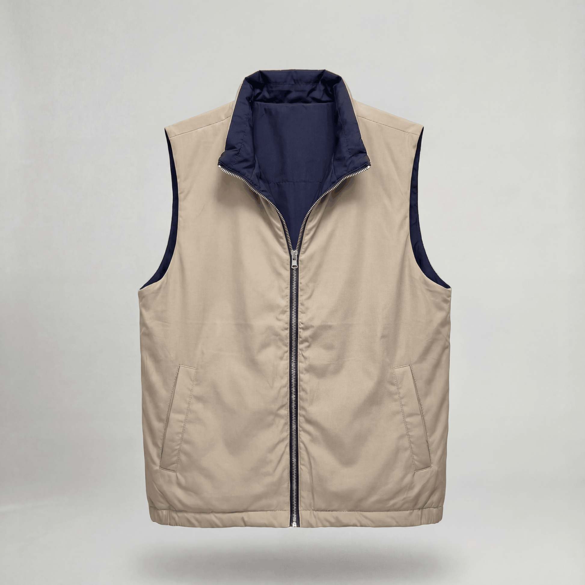 Description of dark blue REVERSIBLE BODYWARMER here